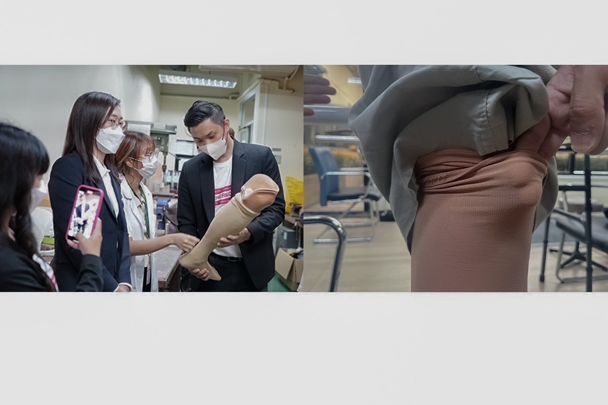ถุงน่องที่ผ่านการใช้งานแล้ว หรือถุงน่องมือสองจะนำไปใช้ในส่วนของขั้นตอนการผลิตทางเทคนิค ที่เรียกว่า การขึ้นรูปพลาสติก นักกายอุปกรณ์จะใช้ถุงน่องมาสวมบนหุ่นปูนพลาสเตอร์ที่หล่อมาจากขาของคนไข้ ก่อนจะนำแผ่นพลาสติกที่อบด้วยความร้อนเกิน 200 องศา มาห่อหุ้มอีกชั้นเพื่อให้สามารถขึ้นรูปพลาสติกด้วยเครื่องดูดระบบสูญญากาศได้ เนื่องจากถุงน่องทำหน้าที่เป็นทางผ่านของอากาศบนผิวของหุ่นปูน ทำให้ดูดอากาศออกได้ดี อุปกรณ์พลาสติกจึงได้รูปร่างของต้นแบบจาก mold หุ่นปูนแต่ละชิ้นอย่างสวยงาม และตรงตามสรีระคนไข้