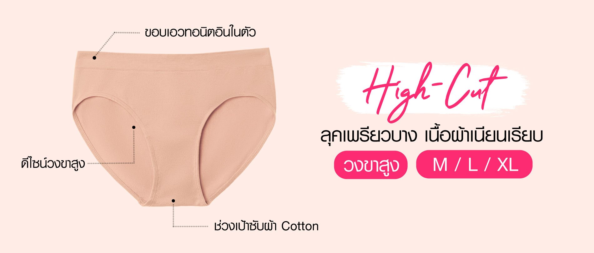 กางเกงในทอไร้ตะเข็บ เชอรีล่อน อินทิเมท ดีไซน์วงขาสูง (Hi-cut) รูปทรงเพรียวสวย เนื้อผ้าทอกระชับ เนียนแนบ ยืดหยุ่นพอดี ทั้งช่วงเอวและขอบขา ช่วงเป้าซับด้วยผ้า Cotton คุณภาพดีเยี่ยม