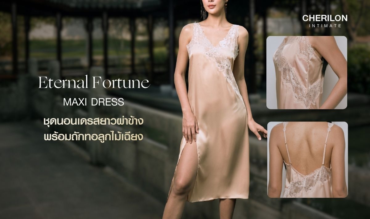 Cherilon Intimate Eternal Fortune คือคอลเลกชัน ชุดนอนซาตินเซ็กซี่ ที่ได้รับแรงบันดาลใจจากแนวคิด Eternal Fortune – โชคลาภนิรันดร์ ผสานความหมายของ “ความรัก” และ “เทศกาลตรุษจีน” ถ่ายทอดผ่านโทนสีแดง-ทองอันเป็นมงคล พร้อมลูกไม้ลายดอกโบตั๋นที่สื่อถึงความสำเร็จ ความมั่งคั่ง และความรักที่งดงาม
