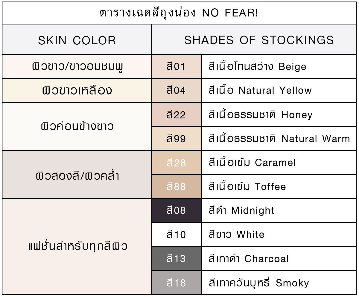 ถุงน่องเต็มตัวซัพพอร์ตรุ่น No Fear ! สวย ทน ไม่กลัวรัน ! สัมผัสเนียนนุ่ม บางกระจ่างใส เหมาะกับการสวมใส่รับปริญญา ทำงาน และทุกๆโอกาส